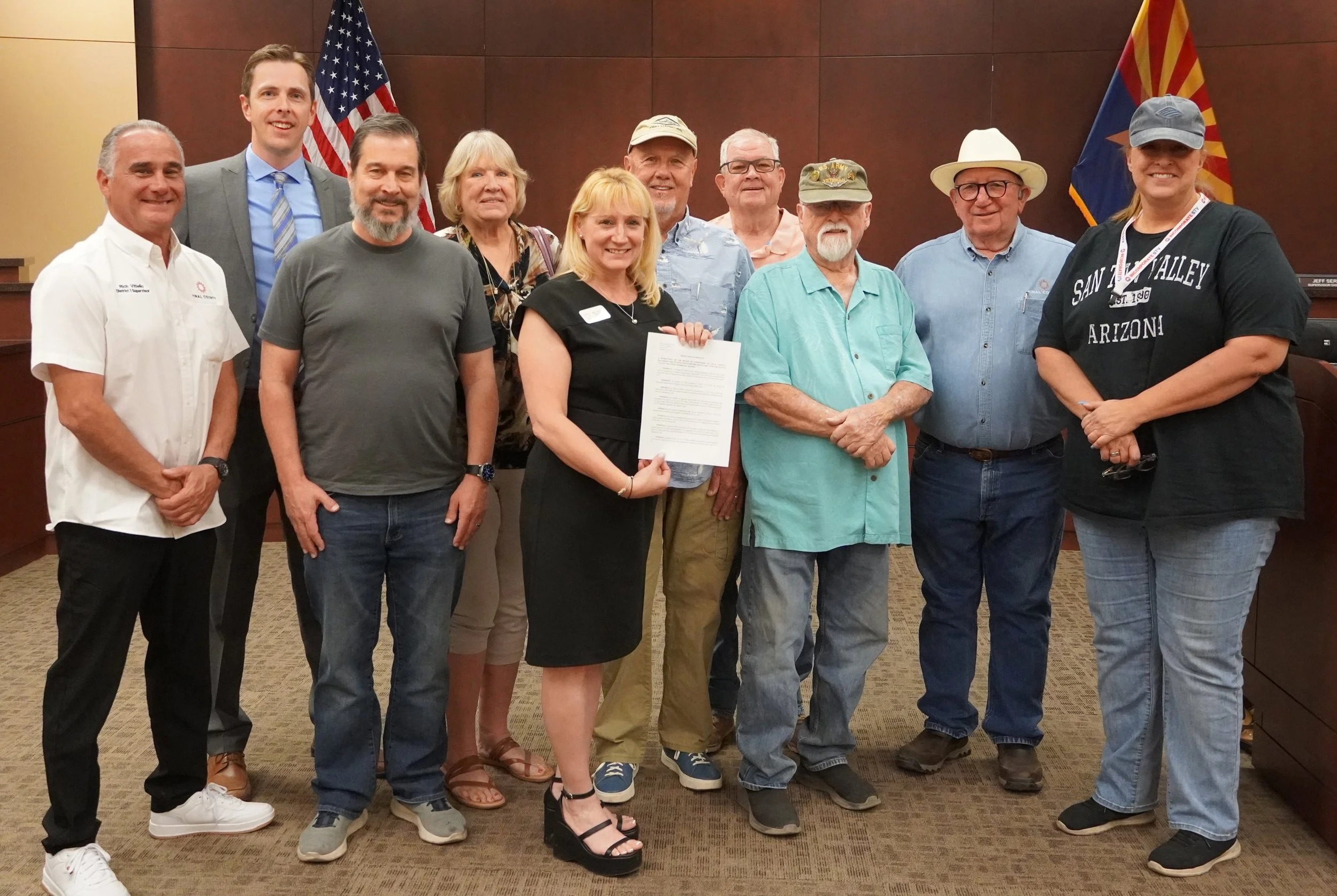 Pinal County Board of Supervisors Recorder Dana Lewis is pictured with the Supervisors and members of the Committee for the Incorporation of San Tan Valley. At a special session on May 2nd, 2025, the Board of Supervisors unanimously approved an August 5 election to decide whether to incorporate San Tan Valley.